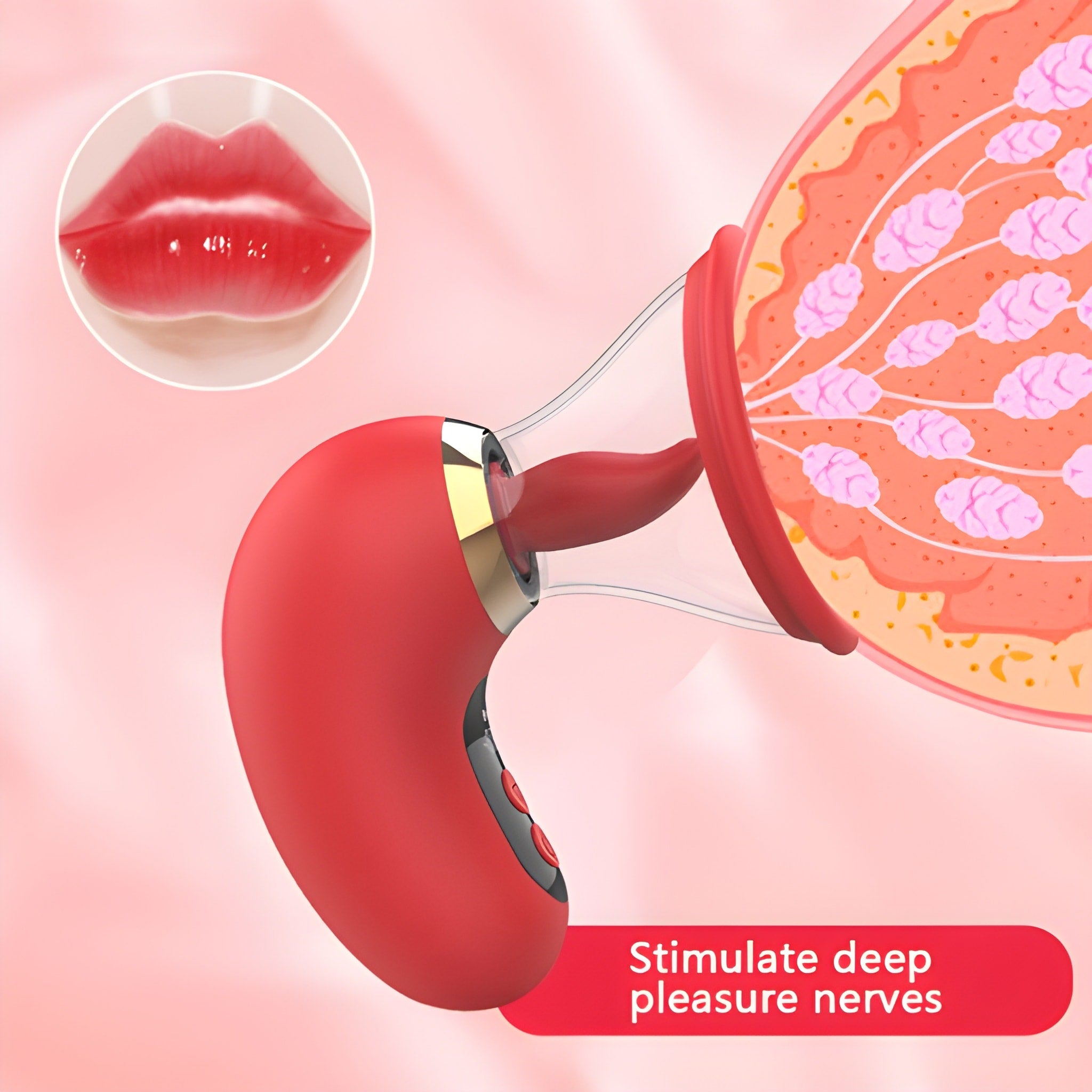 The soft silicone mouth creates a deep suction while the flicking tongue licks in rhythmic waves — perfectly imitating oral pleasure. The transparent cover makes the motion beautifully visible, amplifying the arousal.