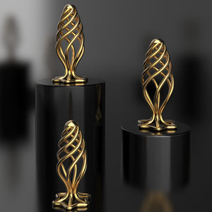 Crafted with a luxurious gold plated finish, the mirror like surface reflects light beautifully while maintaining a smooth, rounded feel against the body. The polished metal texture allows for effortless insertion and removal when paired with lubricant, while the spiral form gradually expands stimulation with every rotation.